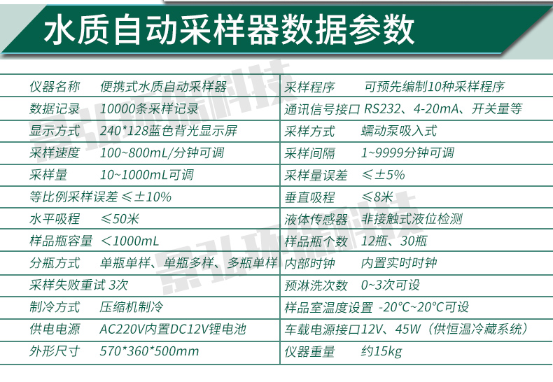 儀器符合中國環(huán)境保護部HJ/T 372-2007《水質自動采樣器技術要求及檢測方法》,是集流量測量、水樣采集,自動分瓶、恒溫冷藏一體的多功能環(huán)境監(jiān)測儀器,具有體積小,方便移動、操作簡捷、環(huán)保節(jié)能等特點。適用于各*環(huán)境監(jiān)測站、監(jiān)察機構、科研院所、水務、市政及污水處理廠,對工業(yè)污染源排放口、江、河、湖、海等水樣進行自動采樣。