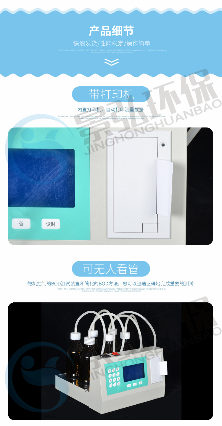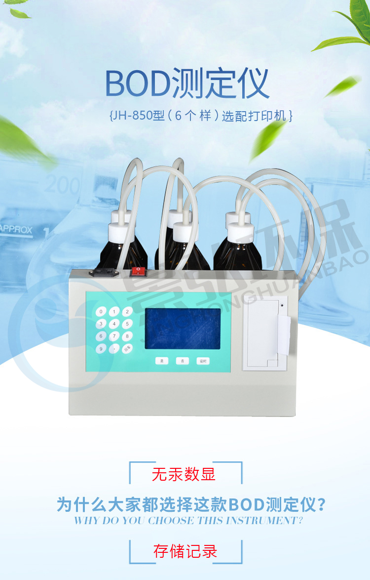 JH-850微電腦數(shù)顯式BOD測定儀是利用空氣壓差法進行生化需氧量測定的一種儀器,能提供與化學(xué)稀釋法可比的測定結(jié)果,具有讀數(shù)直觀,生化反應(yīng)曲線一目了然和使用維護方便等特點,可應(yīng)用于環(huán)保監(jiān)測、石油化工、醫(yī)療衛(wèi)生、教學(xué)科研等部門對水質(zhì)的監(jiān)測。