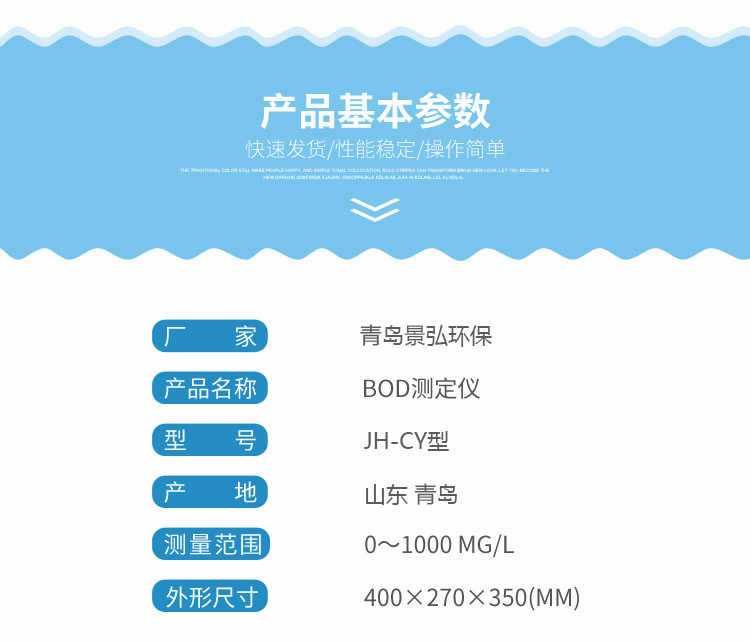 BOD(生物化學(xué)需氧量)是環(huán)境水質(zhì)標(biāo)準(zhǔn)和污、廢水排放標(biāo)準(zhǔn)中的控制項(xiàng)目,是衡量有機(jī)物對(duì)水質(zhì)污染質(zhì)量指標(biāo)之一。JH-CY型BOD5測(cè)定儀廣泛適用于各*環(huán)保部門、水資源管理部門及公共衛(wèi)生部門對(duì)水質(zhì)的監(jiān)測(cè)與管理。可對(duì)各種地表水、生活污水、工業(yè)廢水的BOD值進(jìn)行測(cè)定。