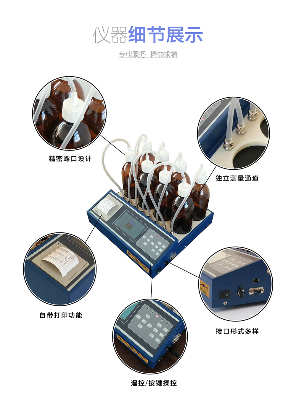 7、 8個(gè)測量瓶,8個(gè)*立測量通道。