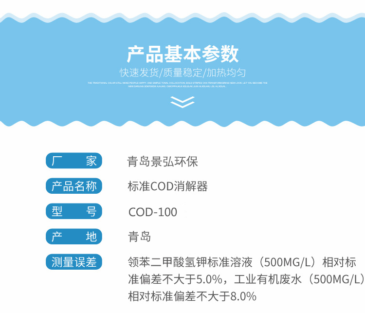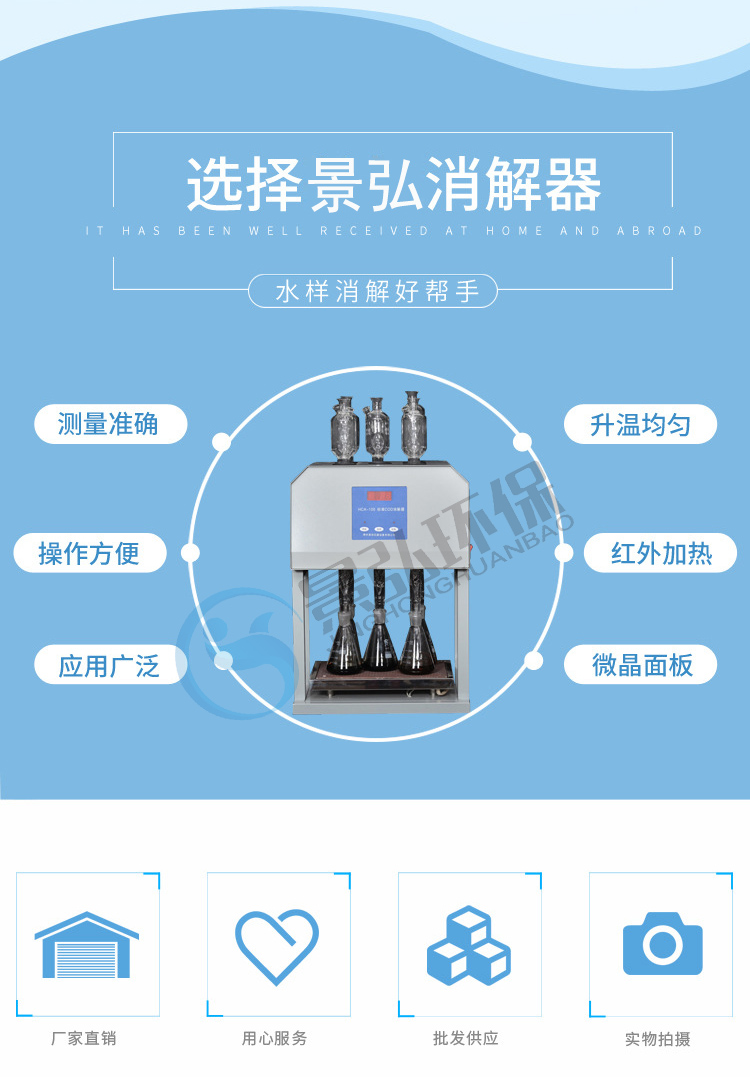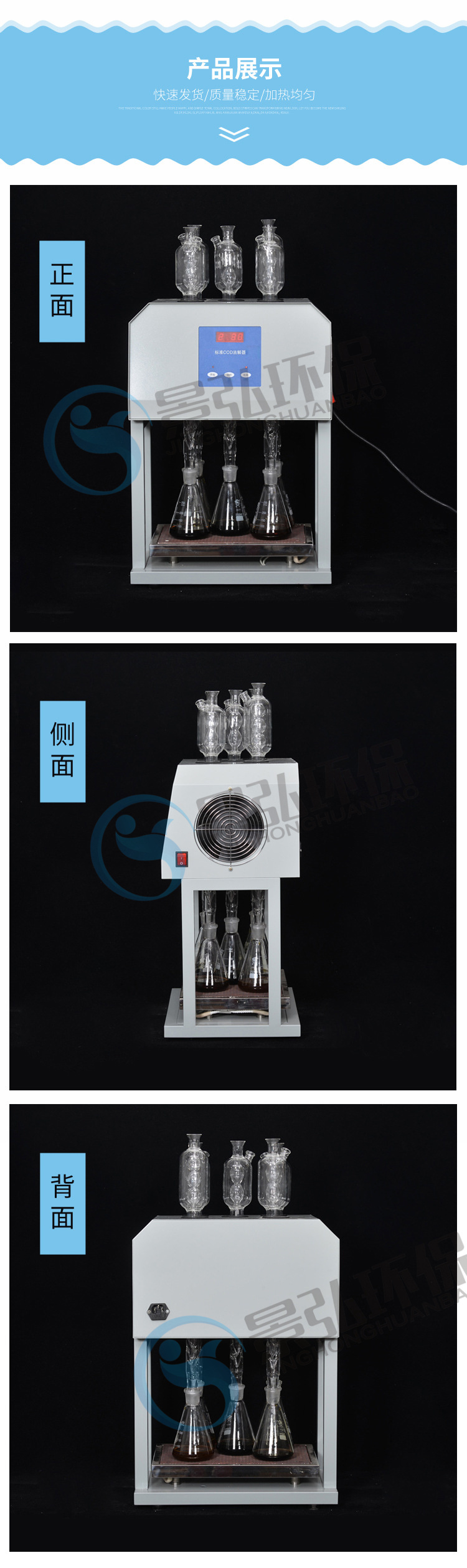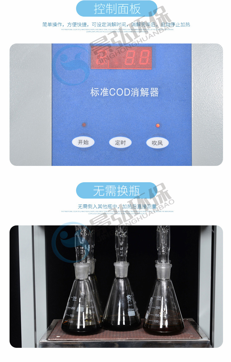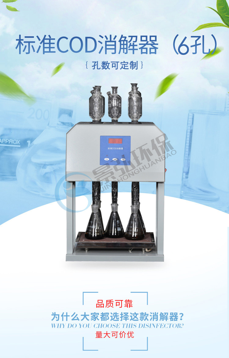 COD-100型COD自動消解回流儀遵循了標準(ISO)和國家標準(GB)的基本原則,保證回流加熱2小時的消解操作,確保分析結(jié)果的準確性。