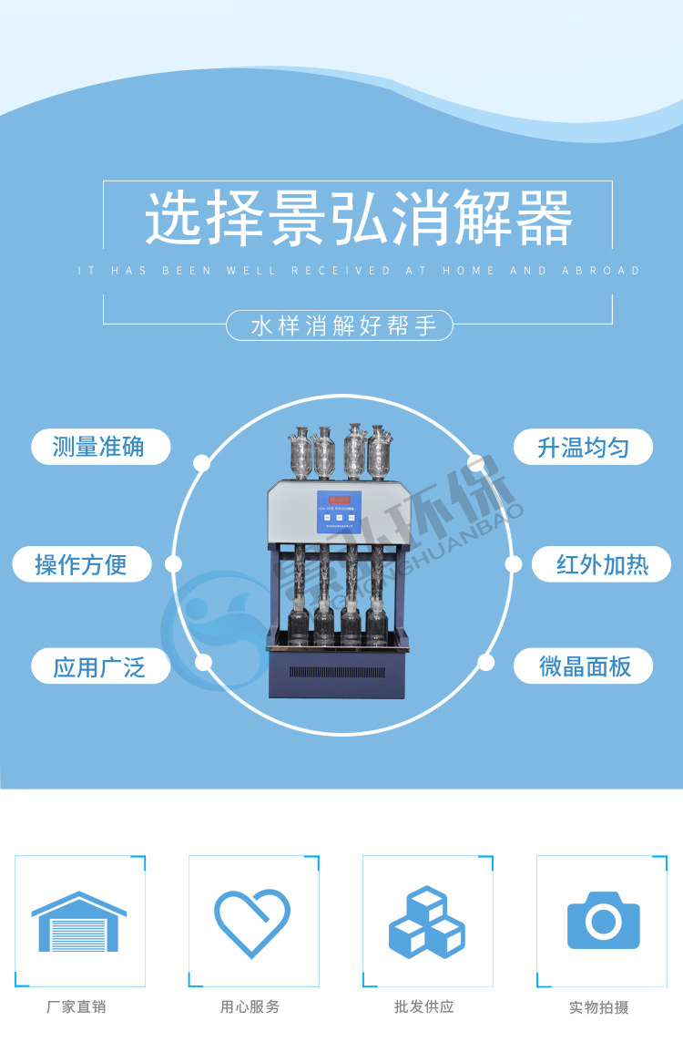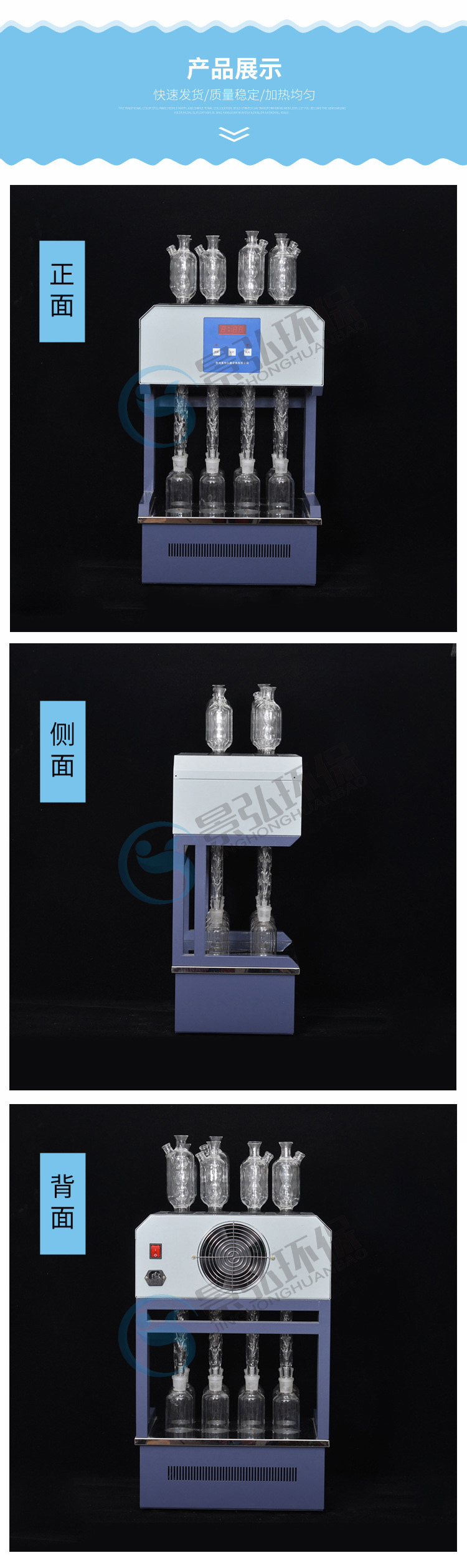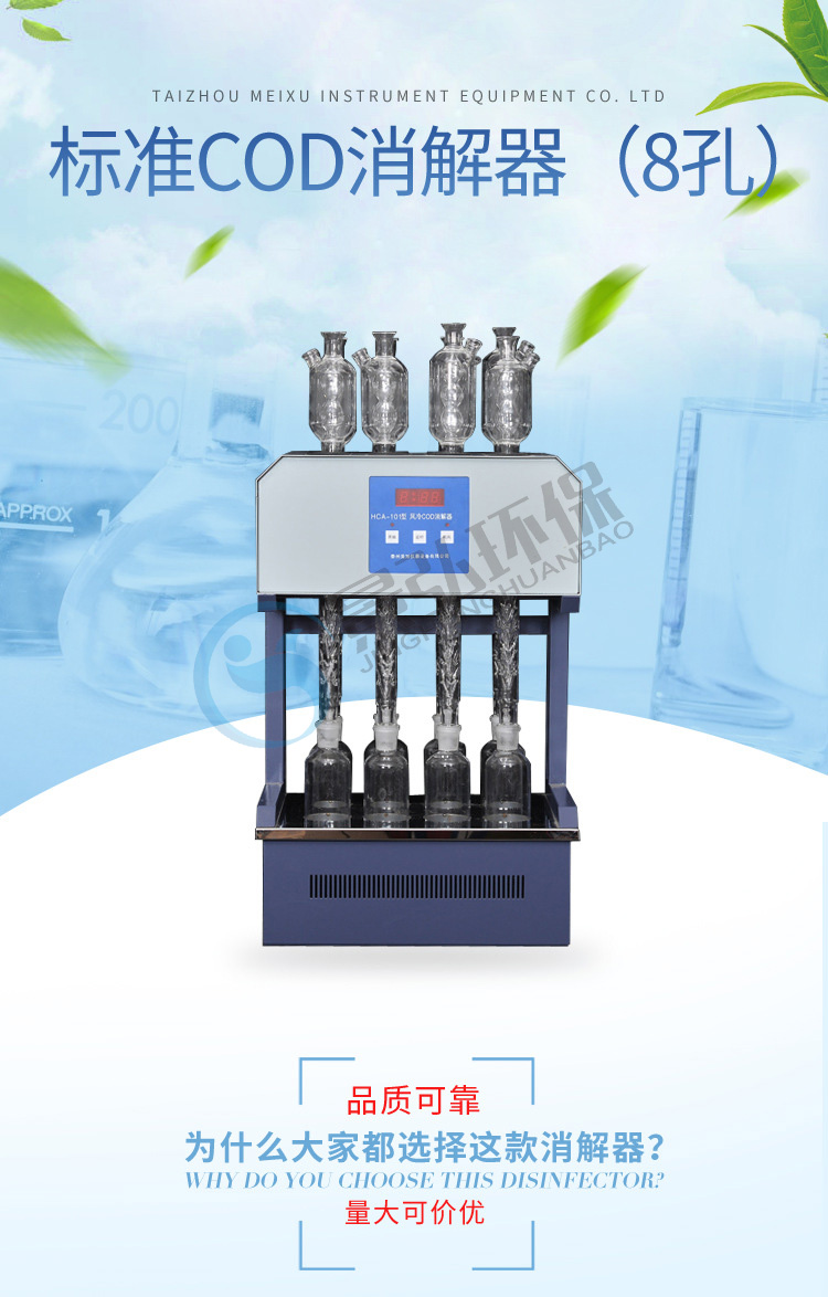 COD消解器遵循了國(guó)家標(biāo)準(zhǔn)HJ828-2017的基本原則,回流加熱微沸2小時(shí)的消解操作,試劑溶液的配制和加入量都和HJ828-2017法一致。