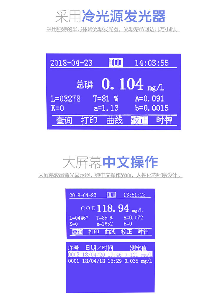 5.1點至7點校正模式,自動計算斜率、截距及相關系數(shù),測量精度高。