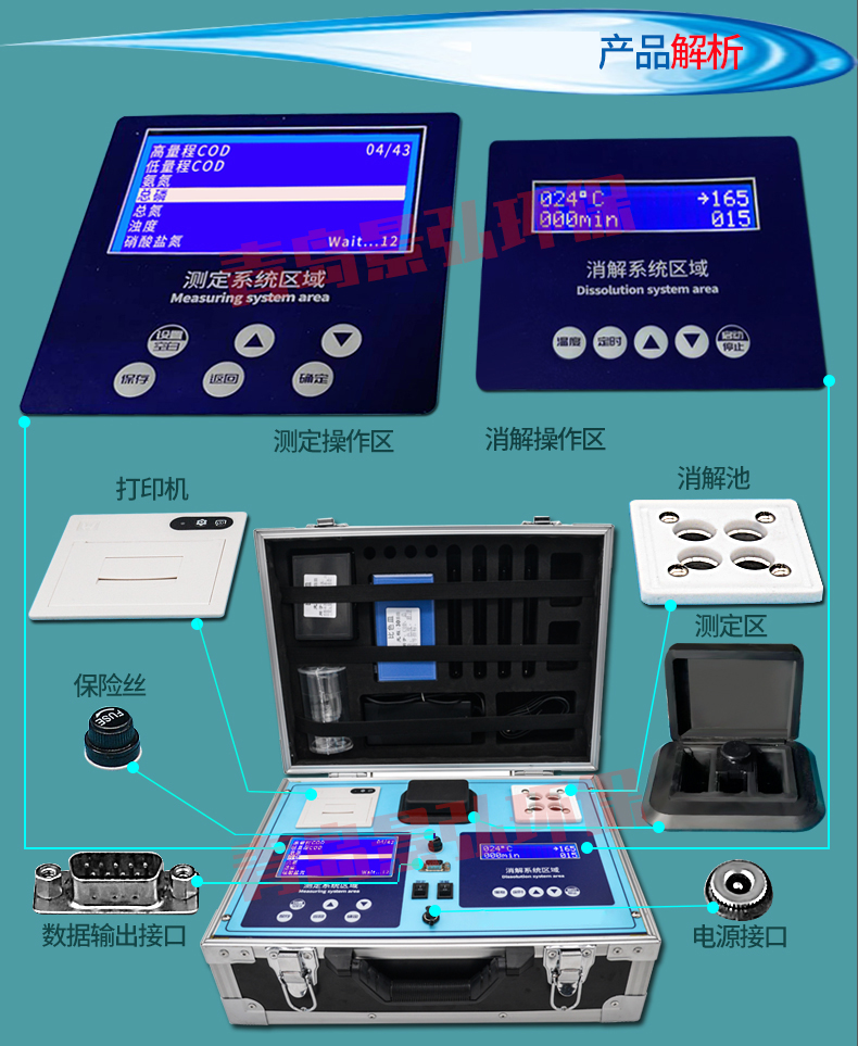 6.儀器內(nèi)置直流電源,鋰電池供電,可實(shí)現(xiàn)多批水樣加熱消解及比色測定;