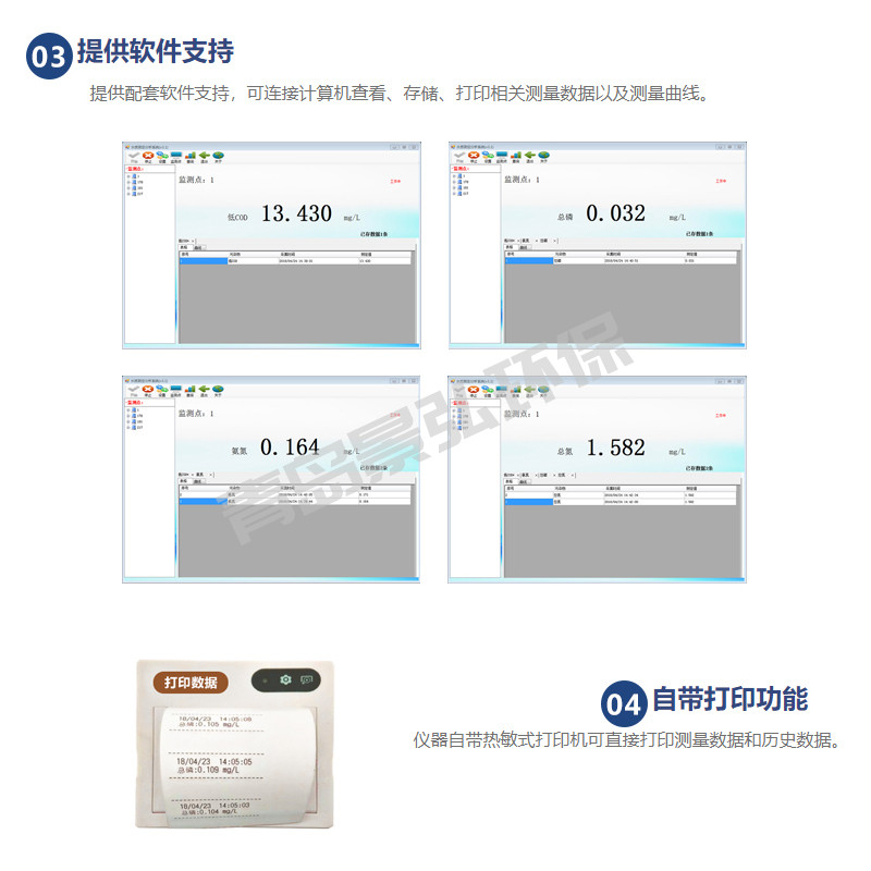 該水質(zhì)檢測儀采用觸控式設(shè)計(jì),集消解功能、測定功能于一體,全中文操作界面,引導(dǎo)式系統(tǒng)操作,精巧的便攜式整機(jī)設(shè)計(jì)提升了用戶的使用操作體驗(yàn)。消解比色一體管設(shè)計(jì),較比色皿式測定,在測定效率以及準(zhǔn)確度上均有所提升,儀器出廠預(yù)存COD、氨氮、總磷、總氮等幾十種指標(biāo)參數(shù)曲線(具體根據(jù)客戶采購的指標(biāo)來內(nèi)置相應(yīng)的曲線),使整個(gè)檢測過程簡單便捷,更易于新手上手操作??蓮V泛應(yīng)用于環(huán)保環(huán)境監(jiān)測、科研水質(zhì)檢測、生產(chǎn)排放監(jiān)察檢測等領(lǐng)域。